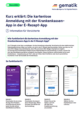 Um Rezepte elektronisch empfangen und einlösen zu können, benötigen gesetzlich Versicherte die E-Rezept-App der gematik – sie heißt Das E-Rezept. Für die Anmeldung in der App brauchen Sie ein NFC-fähiges Smartphone sowie eine NFC-fähige Gesundheitskarte samt PIN von Ihrer Krankenkasse.